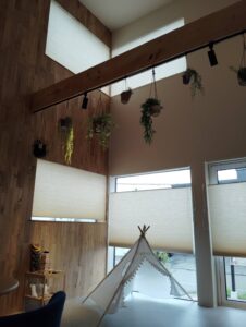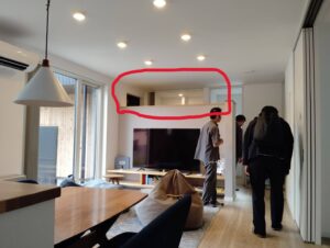 暖かい空気は上に流れていく性質があるので、天井付近の空気の流れを壁で止めないことで、リビングで稼働しているエアコンの暖気を家全体に行き届かせるという考え方だそうです。