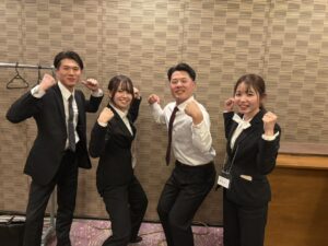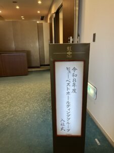 みんな少し緊張しつつもワクワクしながらいよいよ会場入り!😊今回の入社式ではグループ全体で50人、たてものやには4人の仲間が増えました😁