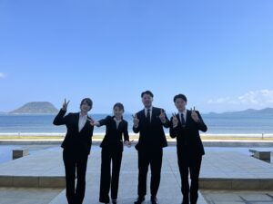 入社式後はシーサイドホテル内のレストランでビュッフェスタイルのランチをいただきました😋一面のオーシャンビューを堪能しながら、ぜいたくな時間を過ごさせていただきました!