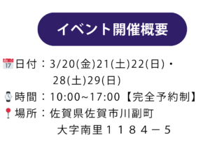 | イベント | 🌟【佐賀初上陸】佐賀市川副町展示場グランドオープン🌟 |
