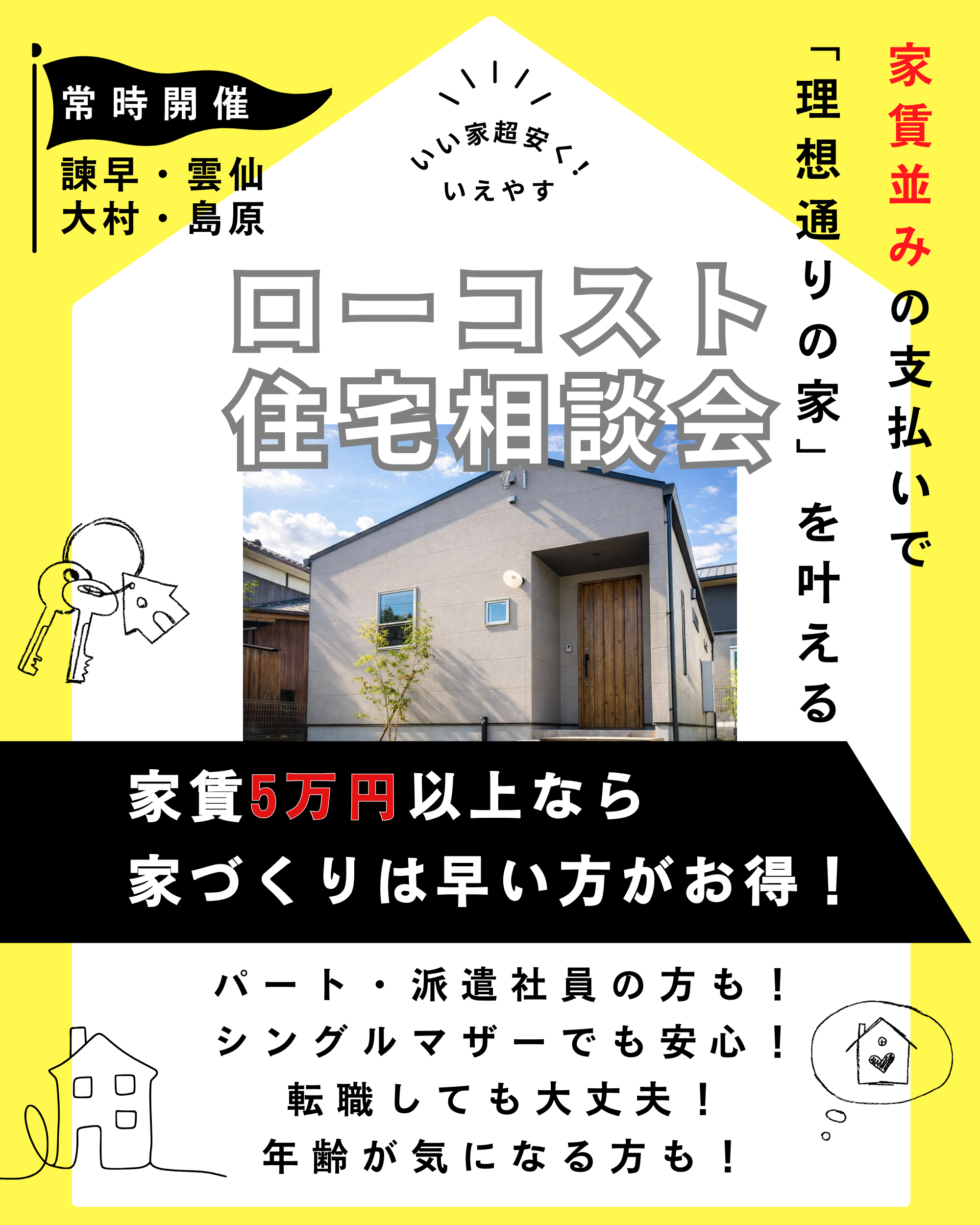 | イベント | ローコスト注文住宅相談会~完全自由設計!月々3万円台から~ |