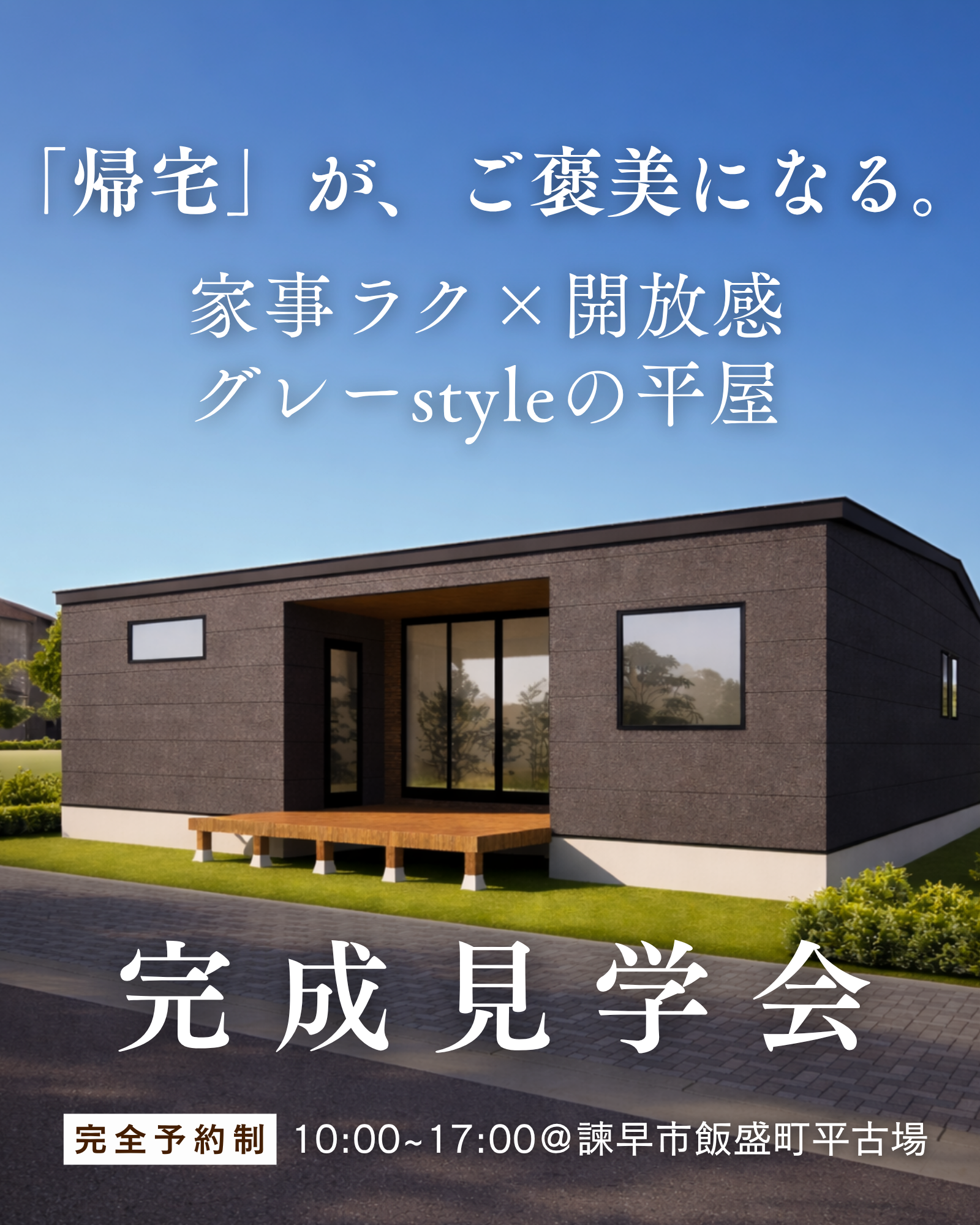 | イベント | 【諫早市】家事ラク×解放感グレーstyleの平屋 完成見学会 |