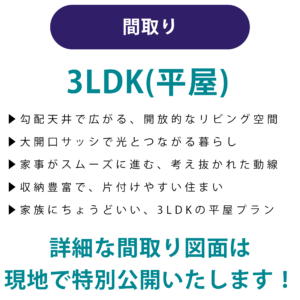 | 備 考 | 「帰宅」が楽しみになる平屋、できました。 諫早市飯盛町平古場にて、期間限定の完成見学会を開催します。 光とつながる大開口リビングと、家事がスムーズな動線。 「ちょっと見てみたい」だけでも大歓迎。無理な営業は一切ありません。 家族にちょうどいい3LDKを、ぜひ現地でご体感ください。 |
