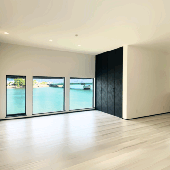 大きな窓から海を望む、開放感あふれる住まいが完成しました。
