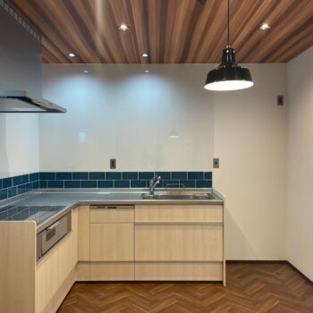 キッチンとダイニングをあえて分けたレイアウトは、生活感をほどよく隠し、すっきりとした空間を保ちます。